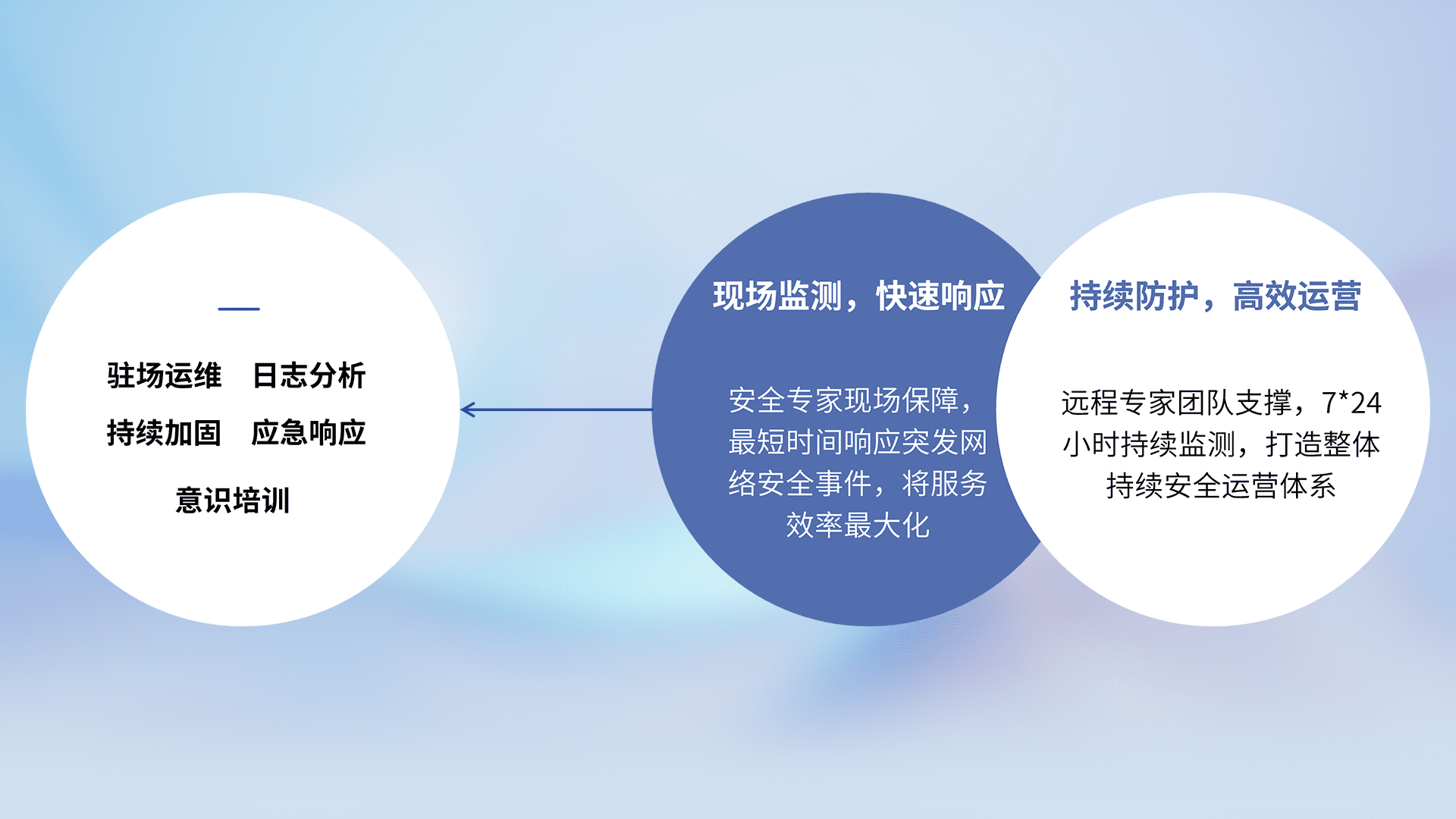 针对客户行业特性,,,,提供专属的一站式安全管理服务,,,,帮助客户全面感知网络空间威胁,,通过安全专家的线上、、、、线下防护支持,,实现风险闭环,,,,将安全保障常态化,,,为客户打造常态化安全运维运营服务。。。。